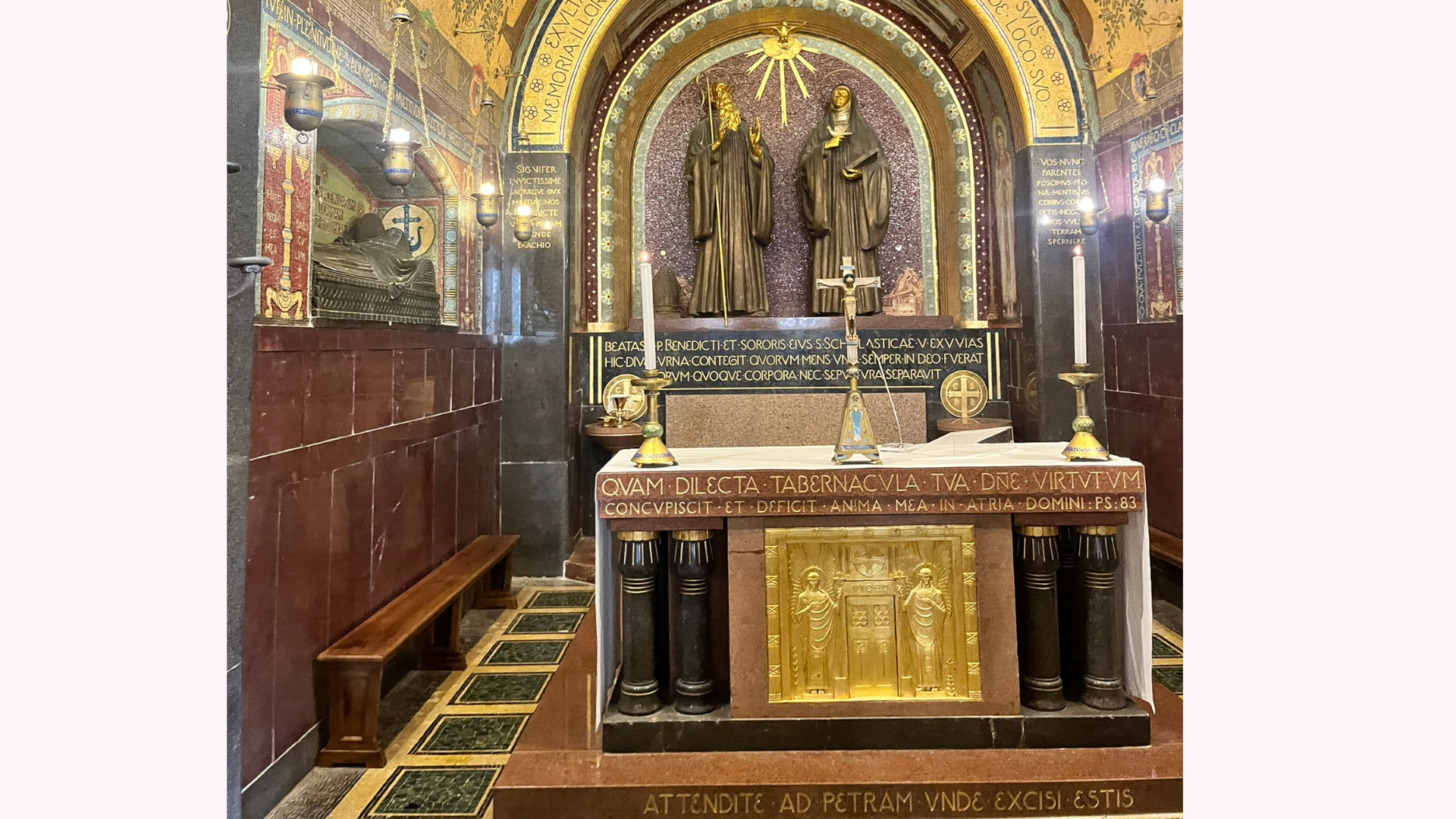 W dolnej części bazyliki znajduje się krypta z relikwiami Ojca Pio. Jego szklany sarkofag, otoczony mozaikami przedstawiającymi sceny z Ewangelii i życia świętego, jest miejscem głębokiej modlitwy i kontemplacji. Atmosfera ciszy, złota i kamienia sprawia, że pielgrzymi zatrzymują się tu na długo — nie tylko ciałem, ale i sercem.